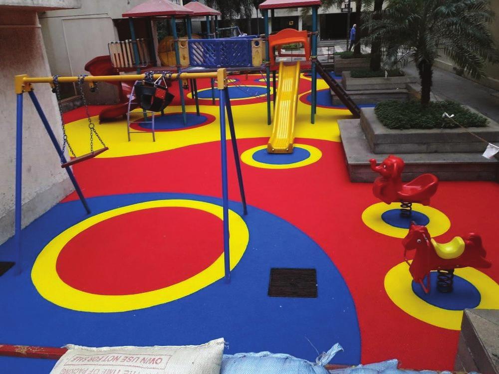 It used system for kids outdoor playareas and walking. VS Sports is into premium quality coloured EPDM granules made in Malaysia and high performance PU binder from Europe.