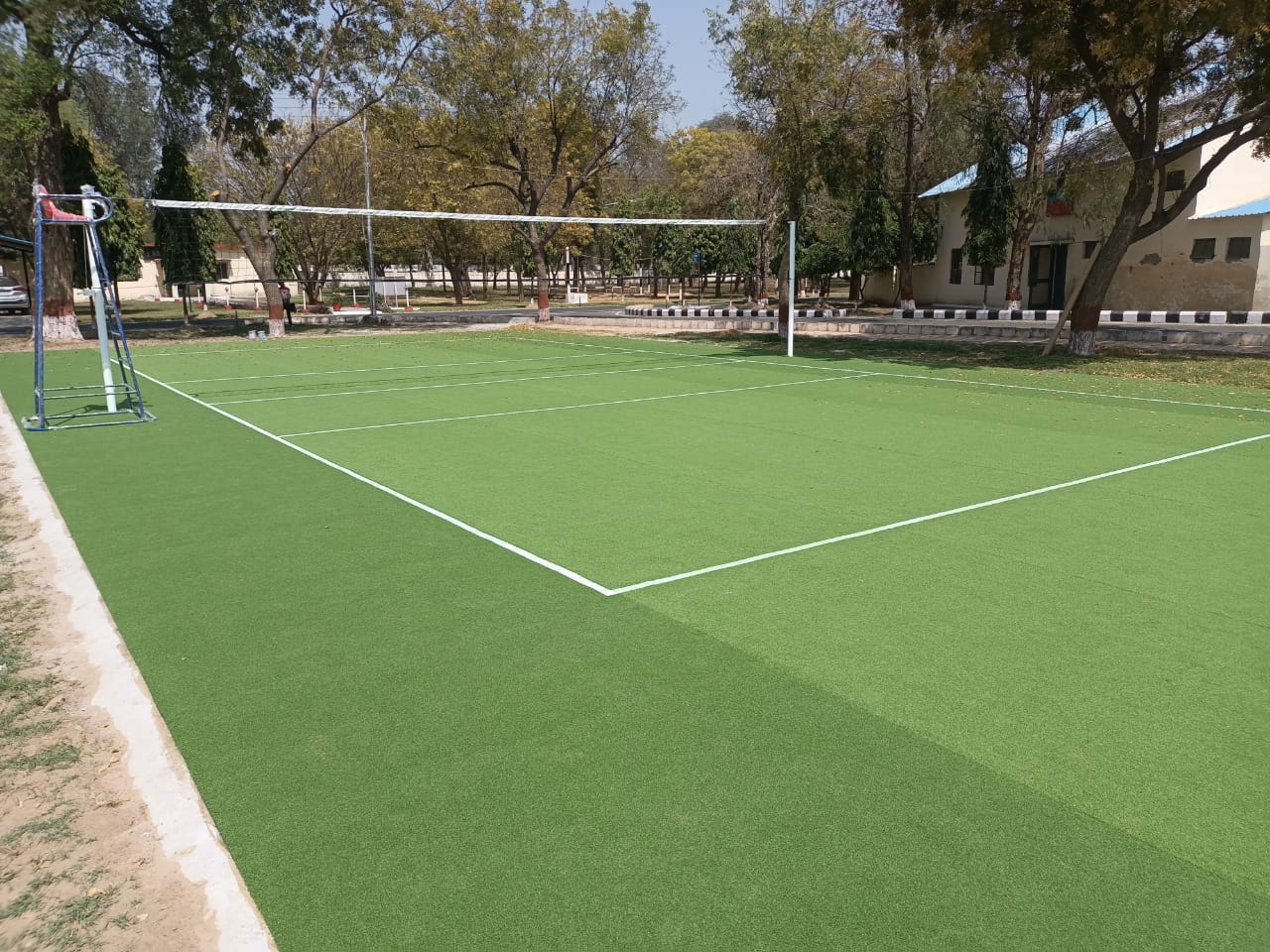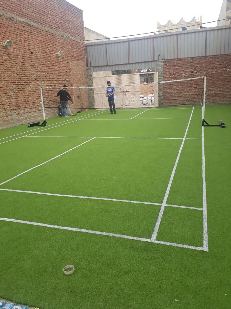 Artificial grass is material that is made of synthetic, man-made fibers that look like real grass. The synthetic grass blades are green and come in different pile heights. It is constructed in the same way that carpet is made; it has a solid backing and then the blades are machine stitched on.